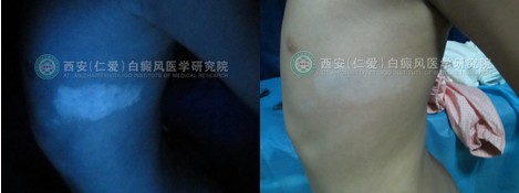 (针对患者的情况,主任为其采用美国第二代308nm准分子激光治疗,辅助体外药离子渗透疗法和靶向无针介入疗法。11月2日,患者复诊,左侧胸部白斑部位色素加深,白斑消失,患者病情得到有效控制,目前处于良好的恢复状态)
